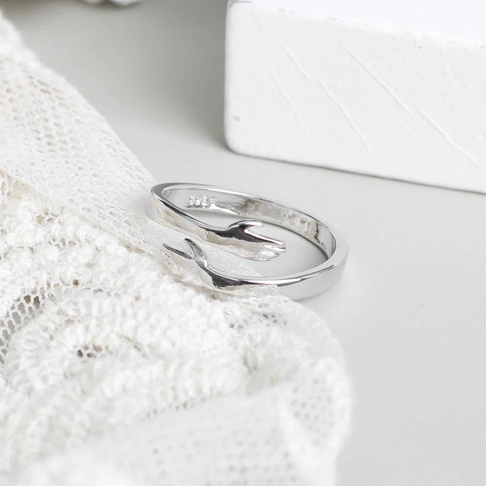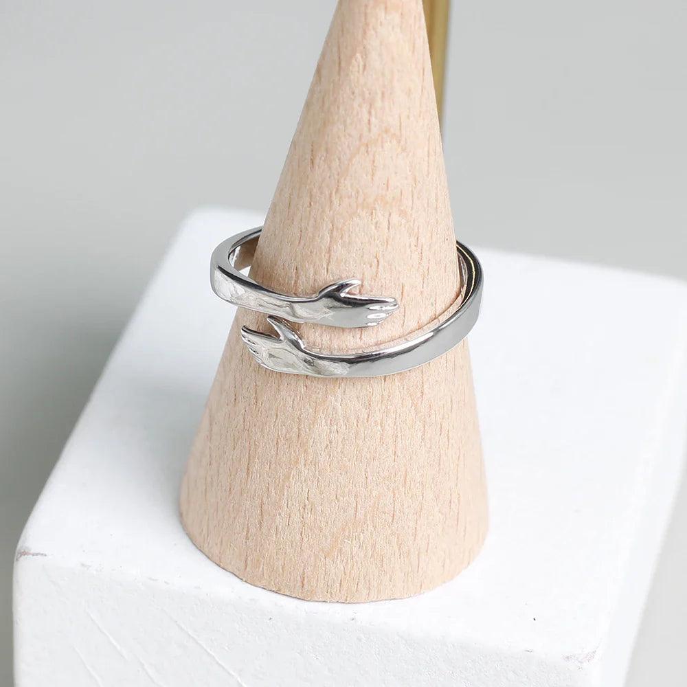 Simbolismo Encantador : O design do anel, representando um abraço delicado, transmite sentimentos de carinho e carinho, tornando-o um presente significativo para quem você ama.